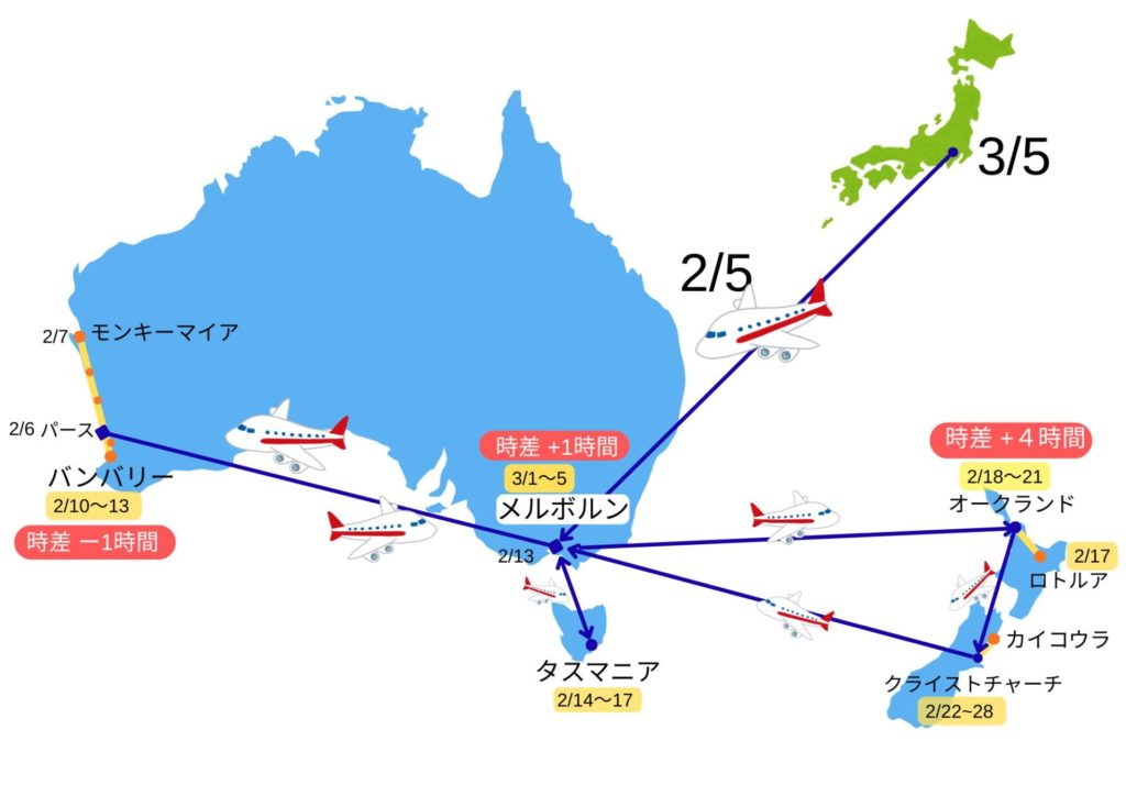 2/5に出発して、3/5の帰国までの29日間でオーストラリアとニュージーランドを周遊してきました。